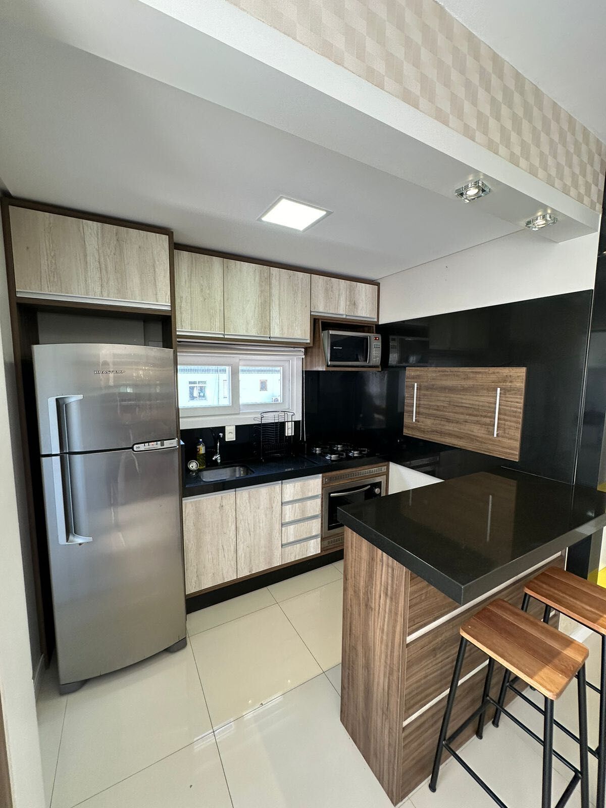 Ar SplitArmário na cozinhaCozinha americanaForro de gessoGás individualHidrômetro individualInterfoneLavanderiaRua asfaltadaVista exteriorZelador