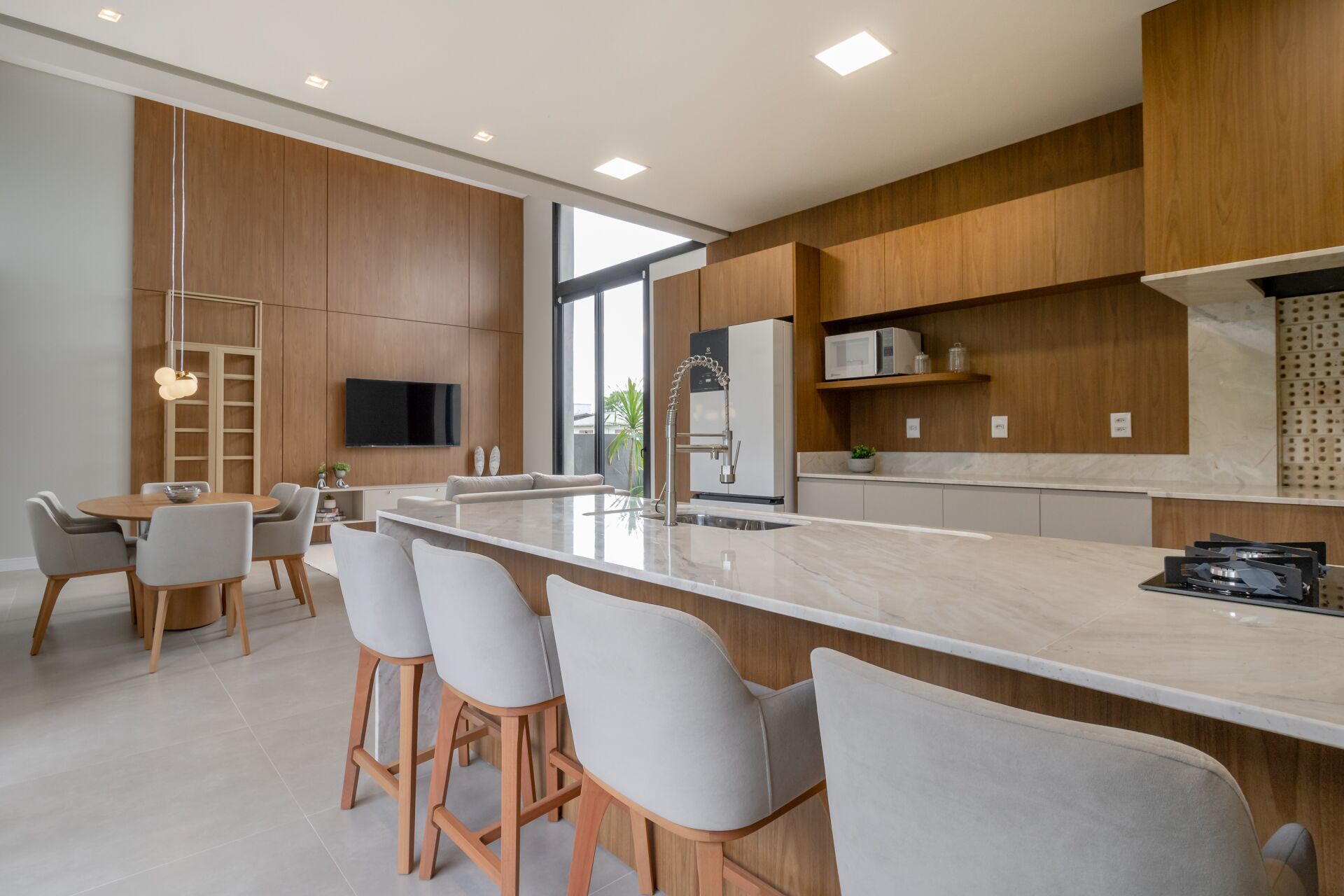 Iluminação Completa, mobiliada e decorada, persianas Automatizadas, mármore Paraná, 3 Suítes uma master com Closet, living Integrado, Pé Direito Elevado, Home Office, revestimento em Pedra Natural, acabamento de Alto Padrão!